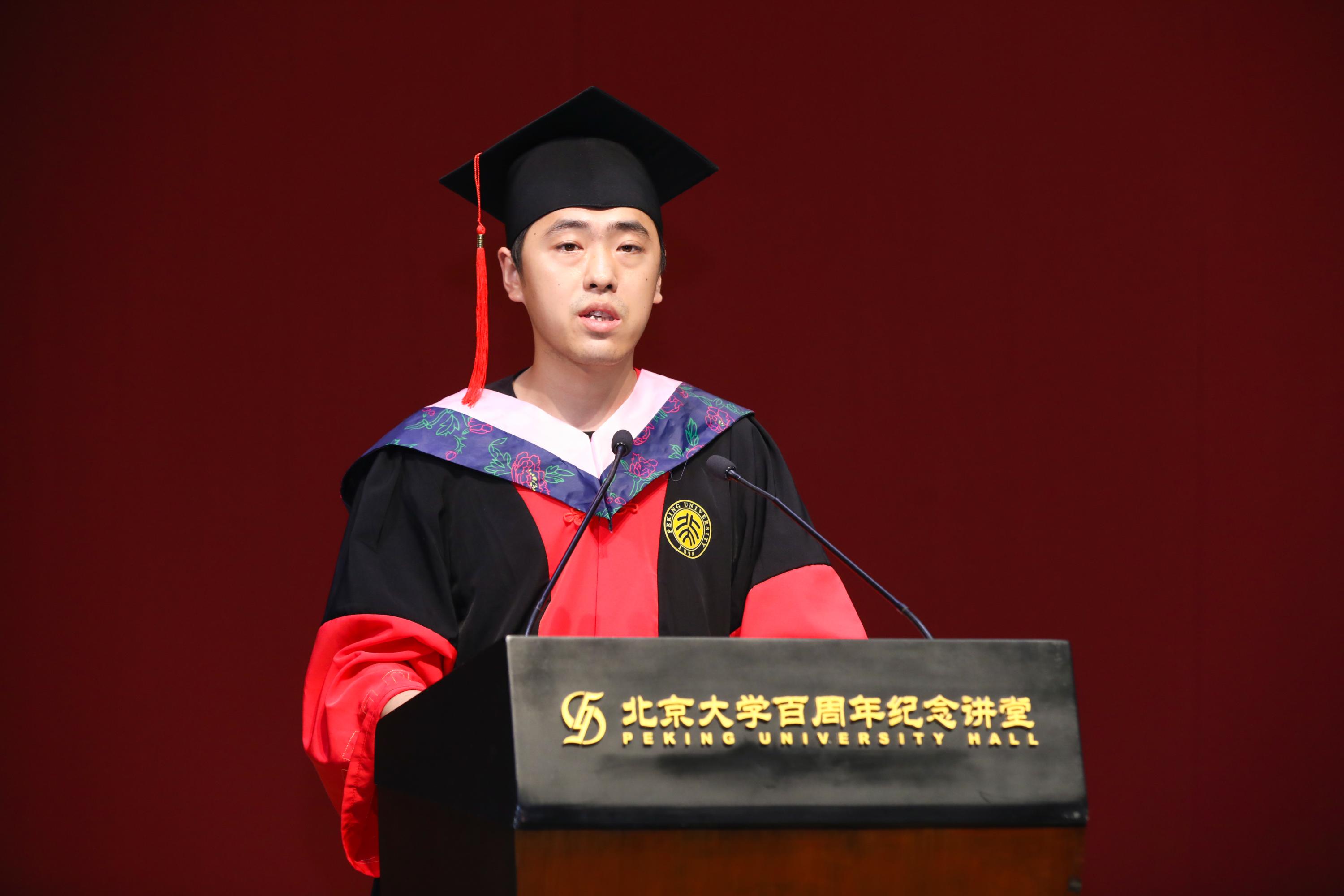 博士毕业,我们各位同学都要离开校园,走向各自的就业岗位,身份从学生转变为社会人了。我们的这一身份转变离不开学院和学校的悉心培养。学校里,我们修习老师们开设的各种课程,学习老师们传授的各种知识,汲取养分。田野里,我们前往全国各地不同的工地,在老师们指导下画好每一个地层关系,挖好每一铲土,脚踏实地。生活中,学校提供了良好的生活条件,老师们也总是不厌其烦地为我们服务,让我们安心地学习了数年。“大师身边宜聆教,未名湖畔好读书”。在这里请允许我,代表各位毕业生对学院和学校的各位老师道一声真诚的感谢!