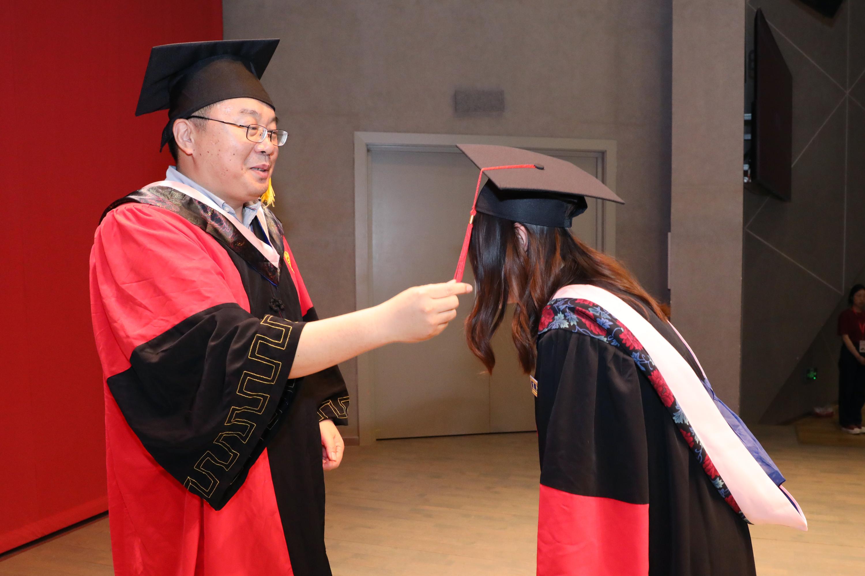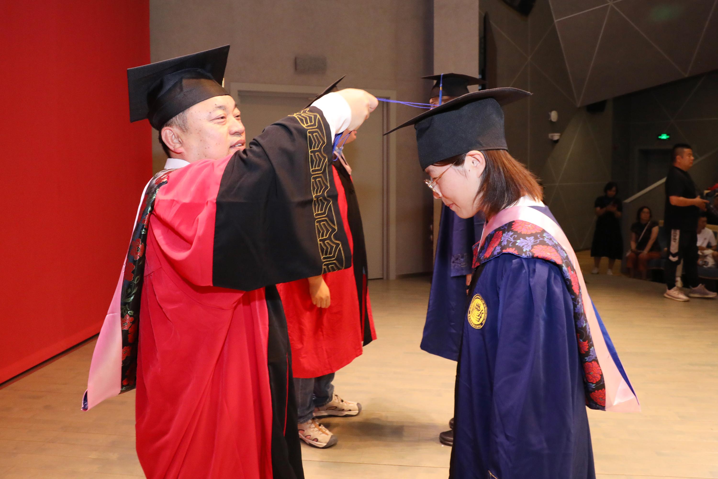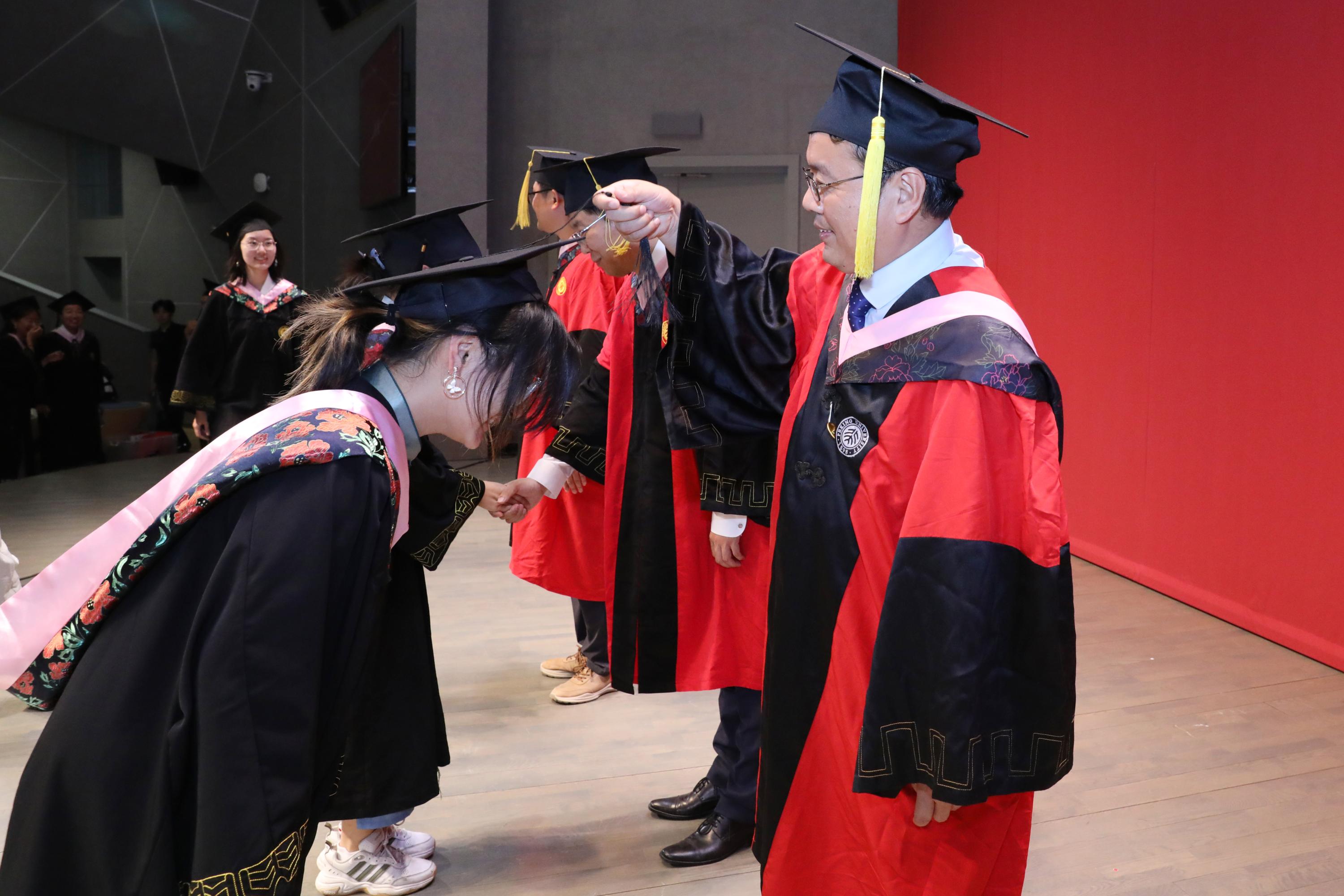 本科、硕士、博士毕业生依次上台接受拨穗并合影。