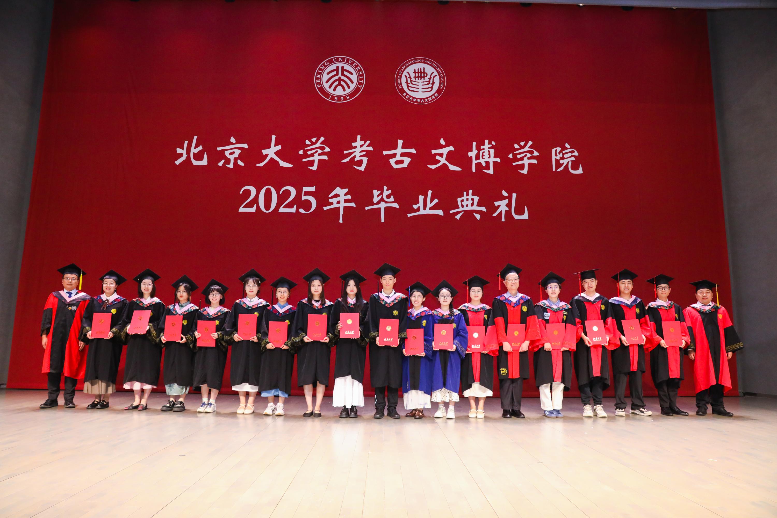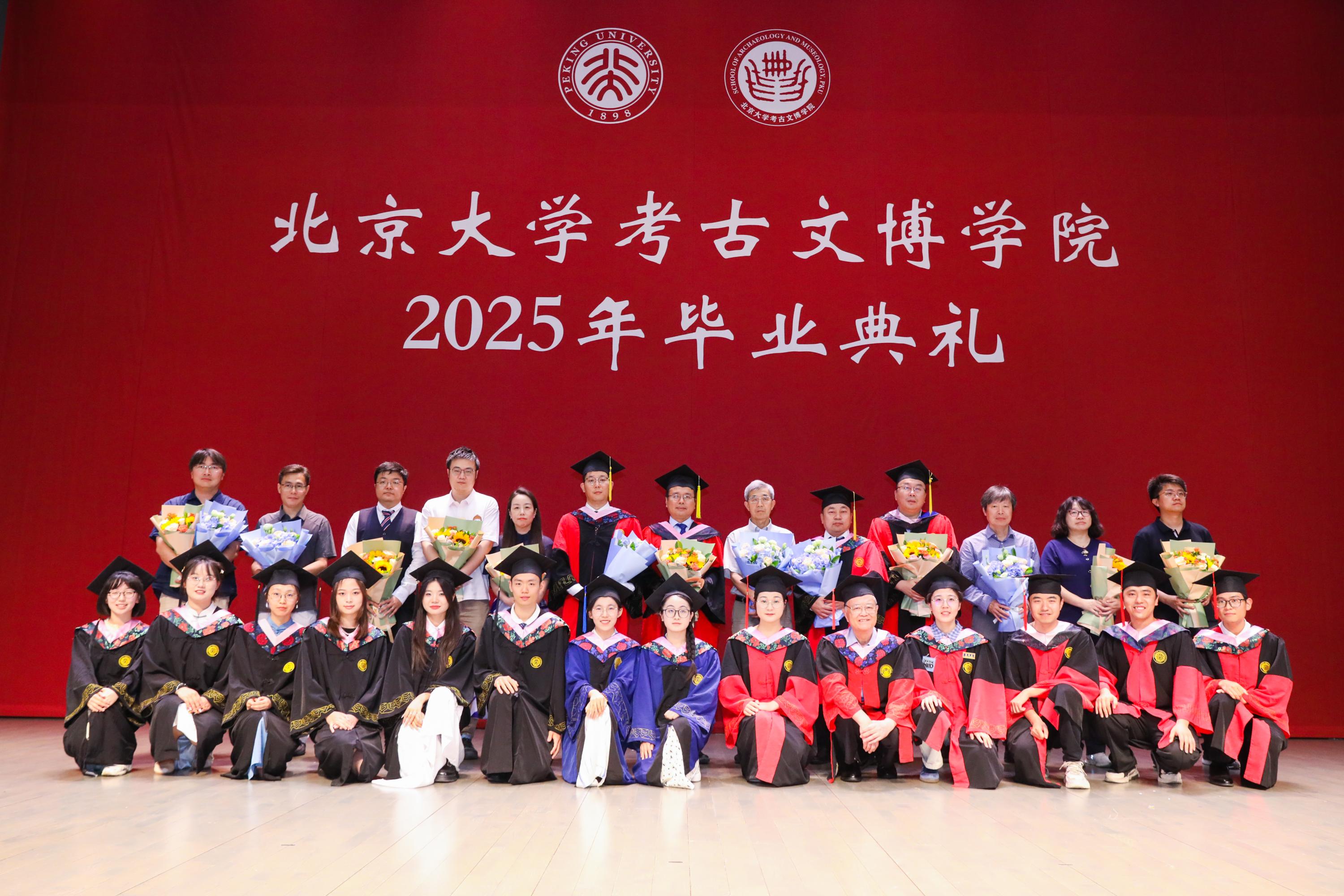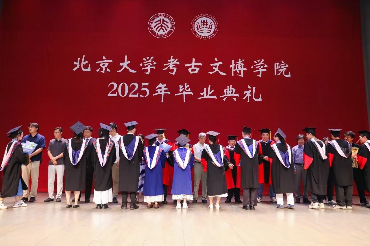 2025年6月30日下午,北京大学考古文博学院2025年毕业典礼于百周年纪念讲堂李莹厅隆重举行。院长沈睿文,党委书记陈建立,副院长崔剑锋,党委副书记、副院长邓振华,党委副书记曹蓓,学院教师代表,2025届全体毕业生以及毕业生亲友共计300余人参加此次典礼。学院退休教授方拥作为教师代表,孙小燕女士作为家长代表受邀出席本届毕业典礼。典礼由学院副院长彭明浩主持。