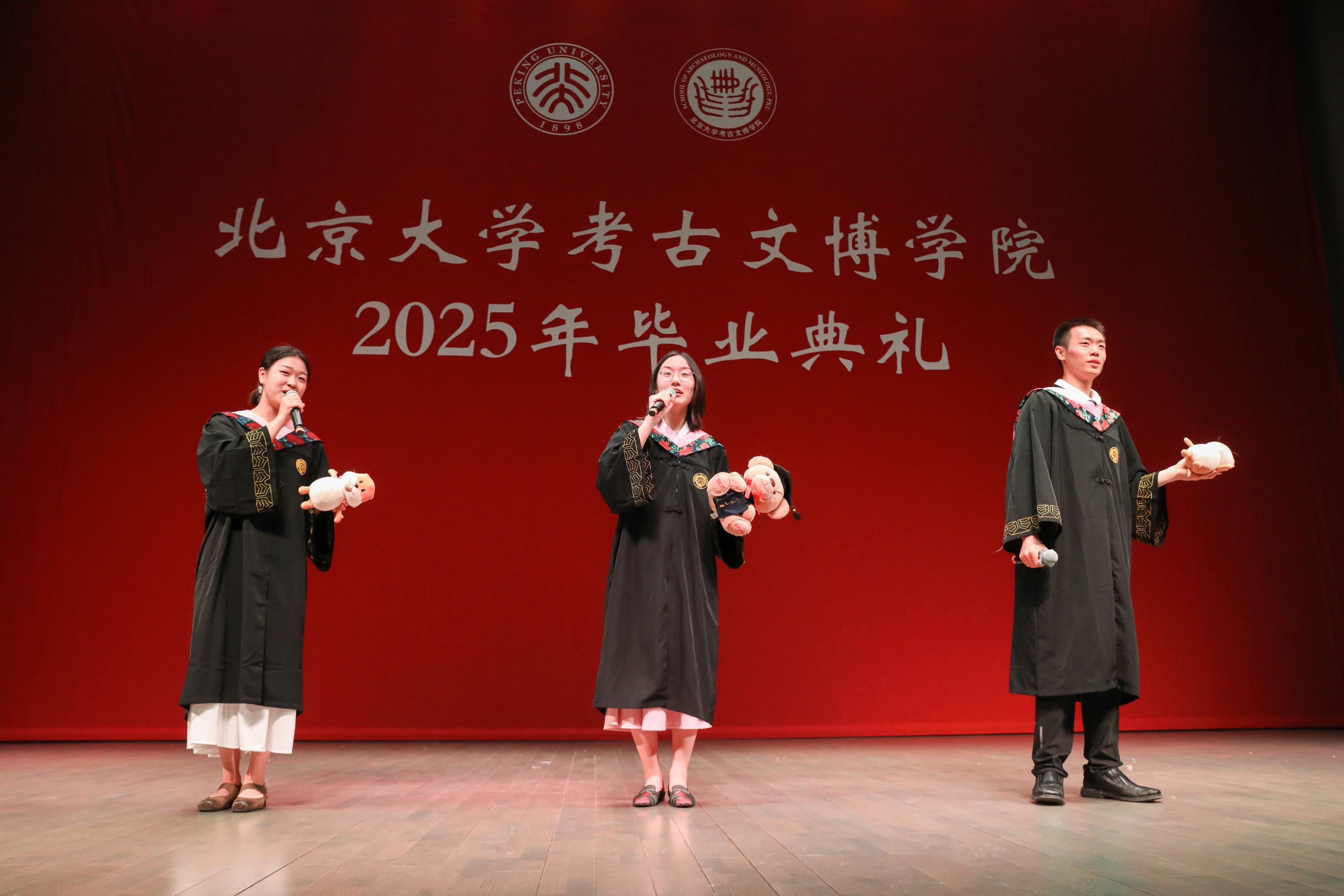 最后,现场全体人员起立,合唱《燕园情》。“我们来自江南塞北,情系着城镇乡野,我们走向海角天涯,指点着三山五岳”,从初入燕园的青春理想,到指点江山的实干激昂,2025届毕业生们将带着北大人的精神与使命,起航奔赴各自的未来。在悠扬的歌声中,北京大学考古文博学院2025年毕业典礼圆满结束。
