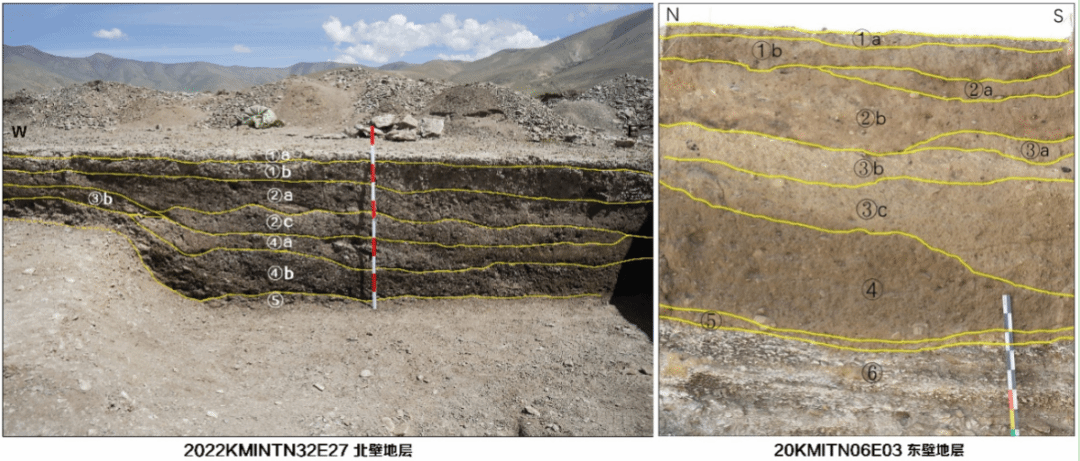 ▲ 玛不错遗址I区北部地层(左侧为阶地中部墓葬区,右侧阶地南端探方壁)