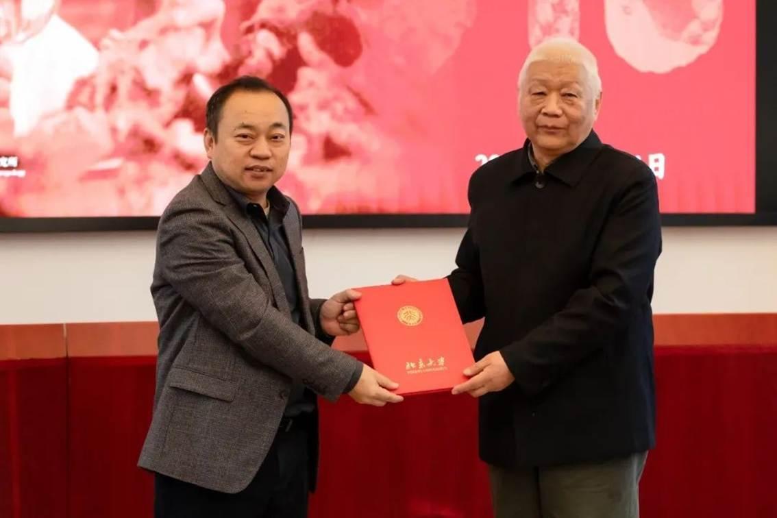 裴文中院士的一生是无私奉献于科学和教育事业的一生,他以卓越的成就奠定了中国旧石器时代考古的基础。1954年,裴院士将其从欧洲带回的570余件典型石器标本捐赠给北京大学,为学术研究和人才培养留下了宝贵的资源。在北京大学考古文博学院师生和文物出版社的共同努力下,这批珍贵标本于今年整理成集并正式出版,以纪念裴文中院士诞辰120周年。座谈会上,考古文博学院院长沈睿文向裴文中院士的家属颁发了捐赠证书,以感谢裴文中院士的无私奉献和家属的慷慨支持。家属代表裴申在致辞中回忆了吕遵谔先生当年得知裴院士决定将这批标本捐赠给北京大学时的激动心情,并讲述了1955年吕遵谔先生亲自蹬三轮车,将这批珍贵标本从中国科学院古脊椎动物研究室(原址位于二道桥2号,现北河胡同)运送30里地至北大的感人情景。