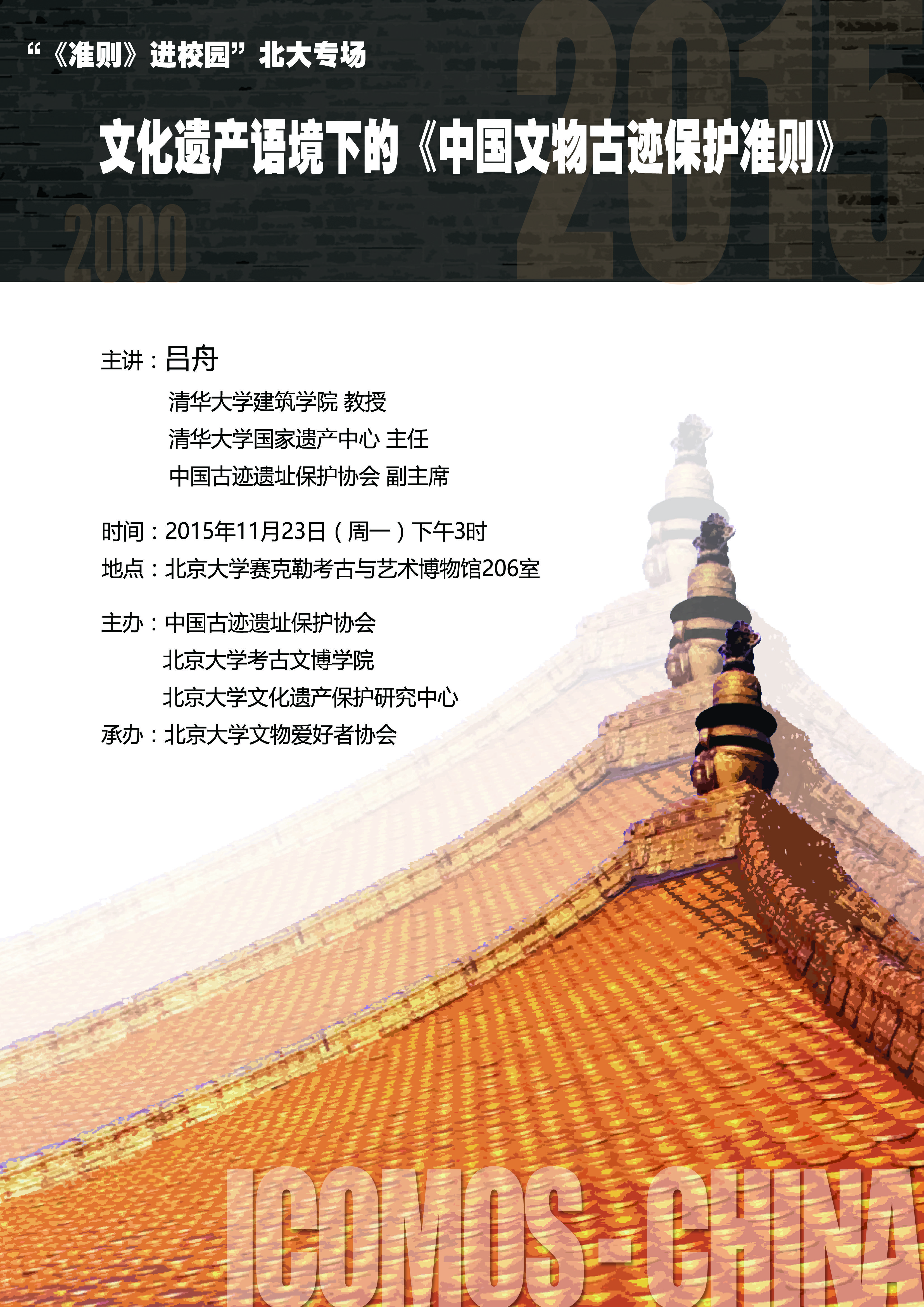 为了帮助正在或即将投身遗产保护实践的“小朋友们”更好地理解《准则》的内容,中国古迹遗址保护协会(ICOMOS-CHINA)与北京大学考古文博学院联合邀请新版《准则》主笔人之一、中国古迹遗址保护协会副主席、清华大学国家遗产中心主任吕舟教授做客北京大学,与我们一道解读《准则》。
