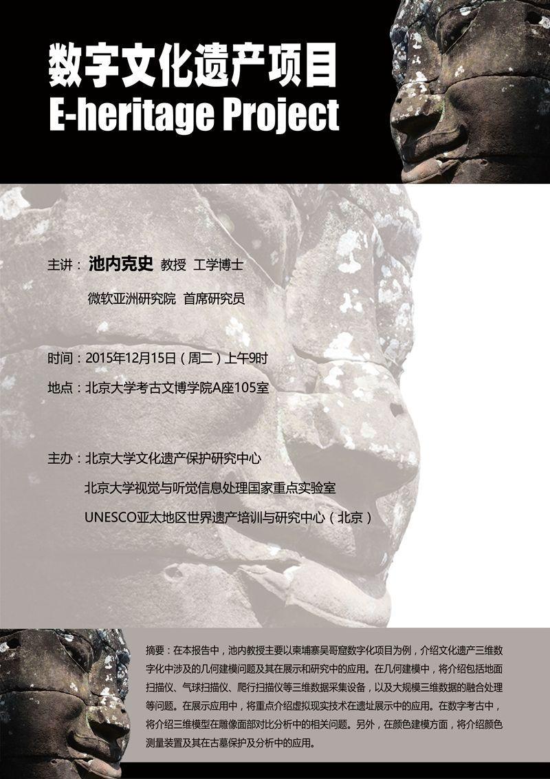 池内教授是最早从事三维数字技术在文化遗产保护中应用的学者之一。在本报告中,池内教授主要以柬埔寨吴哥窟数字化项目为例,介绍文化遗产三维数字化中涉及的几何建模问题及其在展示和研究中的应用。