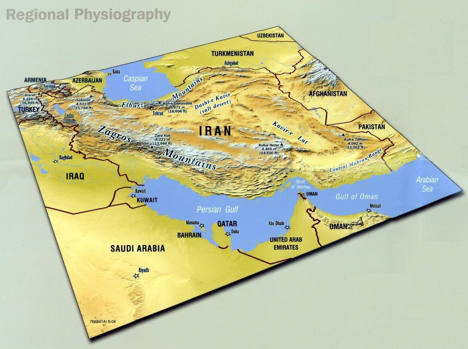 伊朗位于亚洲西南部,是一个典型的高原国家,北接里海、南临波斯湾和阿拉伯海,平均海拔约1000米,是世界上海拔最高的国家之一。四周被厄尔布尔士(The Alborz)、扎格罗斯(The Zagros)等多个山系环绕,中部盆地海拔也基本在300-1200米之间,面积较大的低地仅分布在西南部的胡齐斯坦(Khuzestan)以及里海和波斯湾沿海的小面积冲击平原。