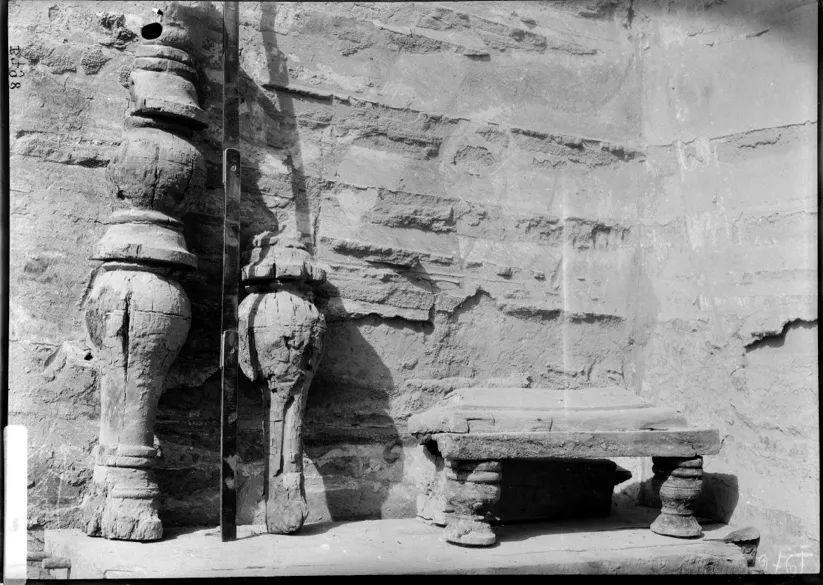 德国人在考察第76窟时,窟前保留有古代的木制品,包括木桌、箱子、门框等,正是该窟前室的老照片将这些遗物记录下来。