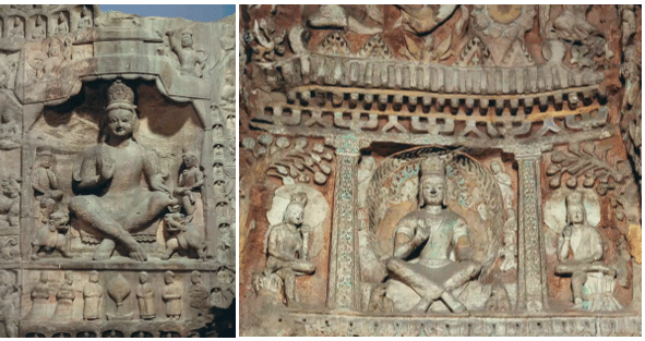 第一,云冈石窟及其影响下出现的盝顶形龛与特定题材源自犍陀罗地区,其传入与模仿、改造及中国化交织并行。