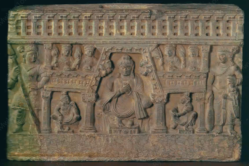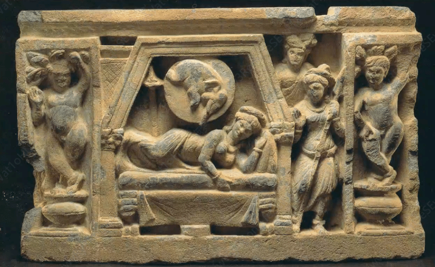 图3:犍陀罗第二种盝顶形龛,表现佛传故事中的灵梦托胎