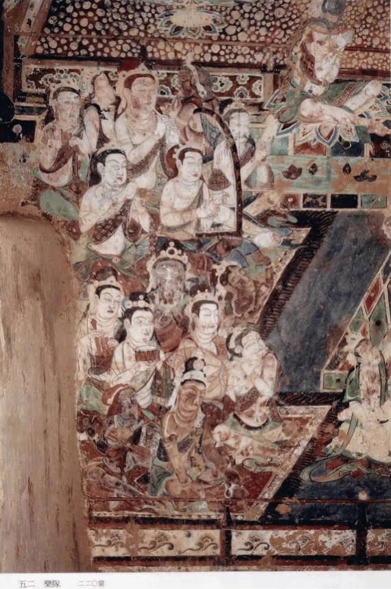 4、乐舞艺术在敦煌壁画中有大量体现乐舞的画面,例如在莫高窟220窟北壁药师经变左右两侧分别绘制有两组乐队共28人,演奏不同的乐器,在展现唐代乐舞达到的艺术高度的同时,也为我们了解当时乐舞形式、乐器组合提供了重要的参考(图4)。5、书法艺术敦煌藏经洞中出土有大量书法作品,其中不乏欧阳询、柳公权等名家书法的拓本,对研究我国古代书法艺术的发展史和艺术价值有着不可估量的贡献。发现的大量佛教写经作品,上起两晋,下至宋元,展现了书法与文字发展的全过程,甚至发现有完整的宫廷写经作品,例如藏经洞P.3278《金刚般若经》,记载了唐代宫廷写经的全部过程。
