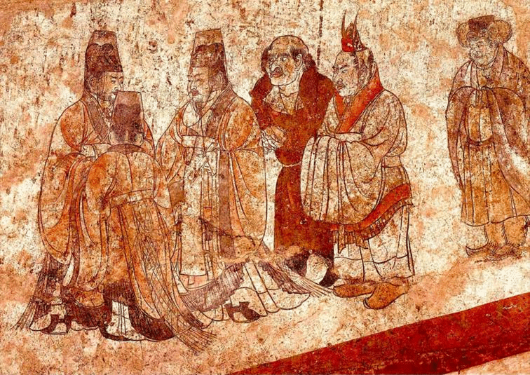 图4 章怀太子墓东壁客使图(采自陕西历史博物馆编《章怀太子墓壁画》,文物出版社,2002年,第40页)