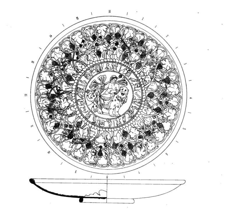 图2 甘肃靖远出土鎏金银盘平剖面图(采自初师宾:《甘肃靖远新出东罗马鎏金银盘略考》,《文物》1990年第5期)