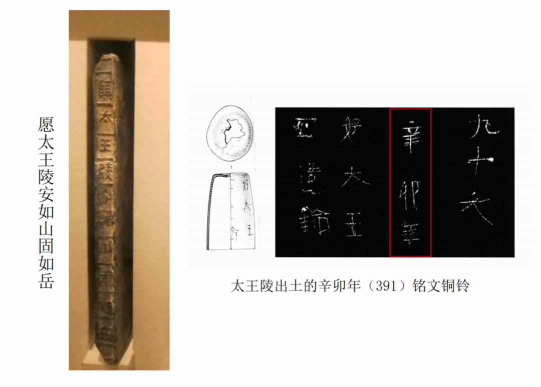 赵俊杰教授首先对“好太王”称号指代对象进行分析,认为“好太王”应为对广开土王的专称,则其他高句丽王的称号或谥号必然不可能与之相同,“好太圣王”这一称号很可能是牟头娄墓墓志书写者对广开土王的溢美之辞。若将其割裂开来,则“好”、“圣”或“太王”中任何一个均不足以专门指代某位高句丽王,因此仅凭太王陵出土的“愿太王陵(崚)安如山固如岳”铭文砖尚无法断定该墓为广开土王陵。此外,相关研究中还存在对文献的过度解读,但文献中仅有“稍作送终之衣”“稍营送终之具”,并未记载高句丽预制寿陵的相关情况。此外,也有将将军坟为长寿王预制的寿陵一事与大同北魏孝文帝万年堂相比较,以此为立足点,推定高句丽王均预制寿陵,但万年堂的修建年代在方山永固陵之后。相关研究中还有将“辛卯年”铭铜铃认为是好太王即位当年制作的器物,因此太王陵是在好太王即位当年便开始修建。但很难想象,391年好太王亲自下令制造的纪年铭文铜铃会出现在二十年后 “迁就山陵”时的祭祀现场。由此,铭文铜铃很可能是广开土王即位当年为父亲故国壤王陵墓制作的随葬品,太王陵应为故国壤王陵。
