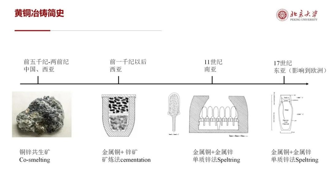 我国黄铜冶铸史根据冶炼技术的阶段特征,可以总结为四个时期,即史前早期黄铜、汉唐时期的外来黄铜、宋至明的本土矿炼黄铜和明清的本土锌化黄铜。这是目前黄铜研究领域的基本认识。可以认为从黄铜实物到技术的输入体现了是中西方古代物质文化交流的鲜活例证!