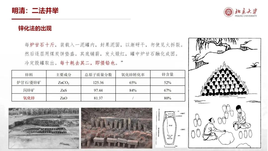 至迟在16世纪,中国发明了“下火上凝法”炼锌技术(图七),直接使用金属锌(倭铅)配黄铜的锌化法随之兴起。但直至清代早中期,矿炼法和锌化法始终处于并行发展的状态。究其原因,据《天工开物》记载,可能是由于二者产出的黄铜在加工性能上存在显著差异。