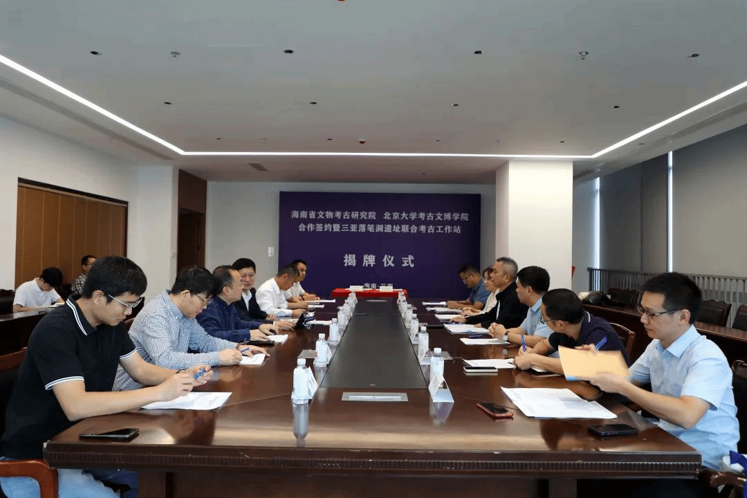 为深入贯彻落实习近平总书记关于文物考古工作的系列重要指示批示精神,深化校地合作,努力建设中国特色、中国风格、中国气派的考古学,2024年12月1日上午,北京大学考古文博学院与海南省文物考古研究院合作协议签约暨三亚落笔洞遗址联合考古工作站揭牌仪式在三亚举行。海南省旅游和文化广电体育厅党组成员、副厅长、省文物局局长苏启雅,文物保护与考古处处长于洋,海南省文物考古研究院院长宋建忠,田野考古研究所负责人何国俊,文物信息中心负责人李东风,北京大学考古文博学院院长沈睿文,副院长邓振华,研究员李锋等出席揭牌仪式。仪式由三亚市旅游和文化广电体育局副局长钟凤毛主持。